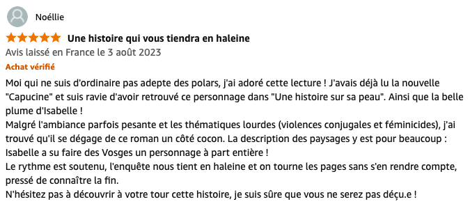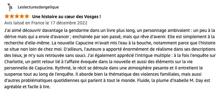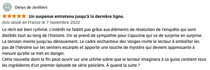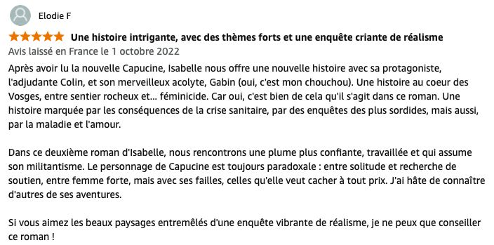 Été 2019. Après dix ans d’absence, l’adjudant Capucine Colin est revenue vivre dans les Vosges, auprès de son père malade. Quand un cadavre est découvert au coeur de la forêt de Fossard, la jeune femme mène l’enquête. Dans cette petite ville où les visages de son passé croisent ceux du présent, saura-t-elle démasquer le coupable ?